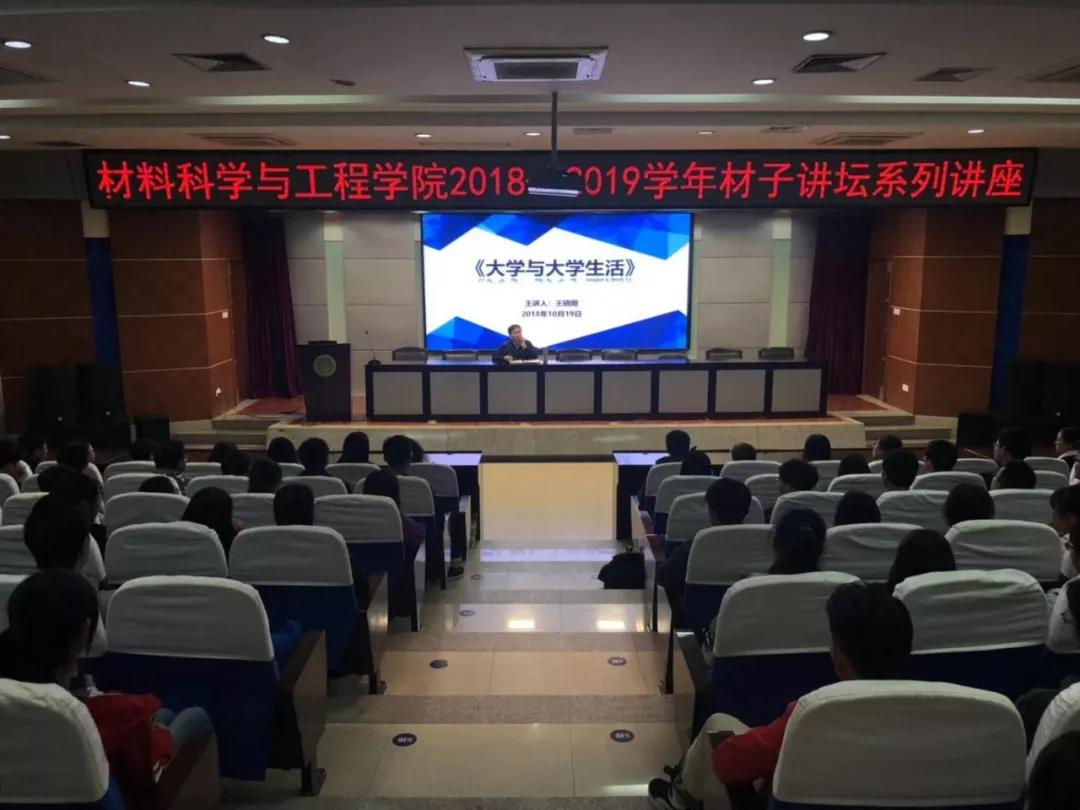10月19日下午,材料学院2018—2019学年“材子讲坛”系列讲座第二讲于临潼校区骊山校园图书馆报告厅成功举办,主讲人为王晓刚教授,18级全体同学到场聆听讲座。