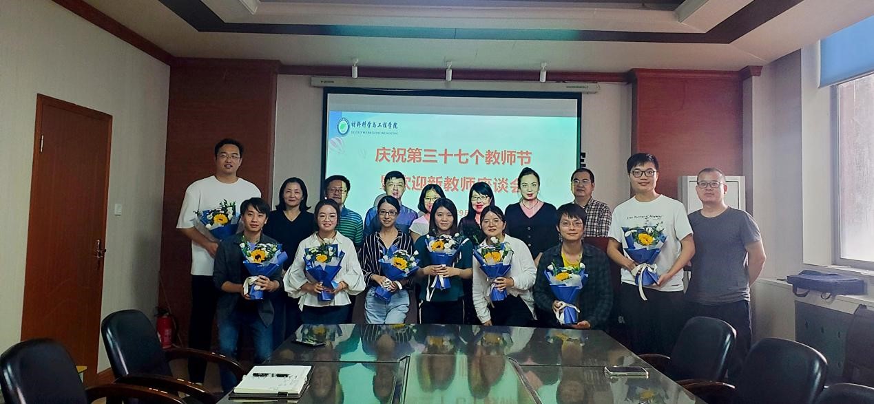 春风化雨育桃李,金秋硕果慰园丁。9月8日下午,材料学院雁塔校区会议室举办庆祝第37个教师节暨欢迎新教师座谈会。院长杜慧玲,党委副书记马婧智闻,副院长朱明、杨庆浩,各支部书记、系主任,教师代表和材料学院全体新教师近30人参加了座谈会,座谈会由院党委书记周涛主持。