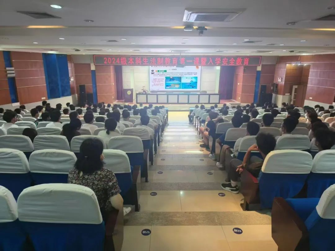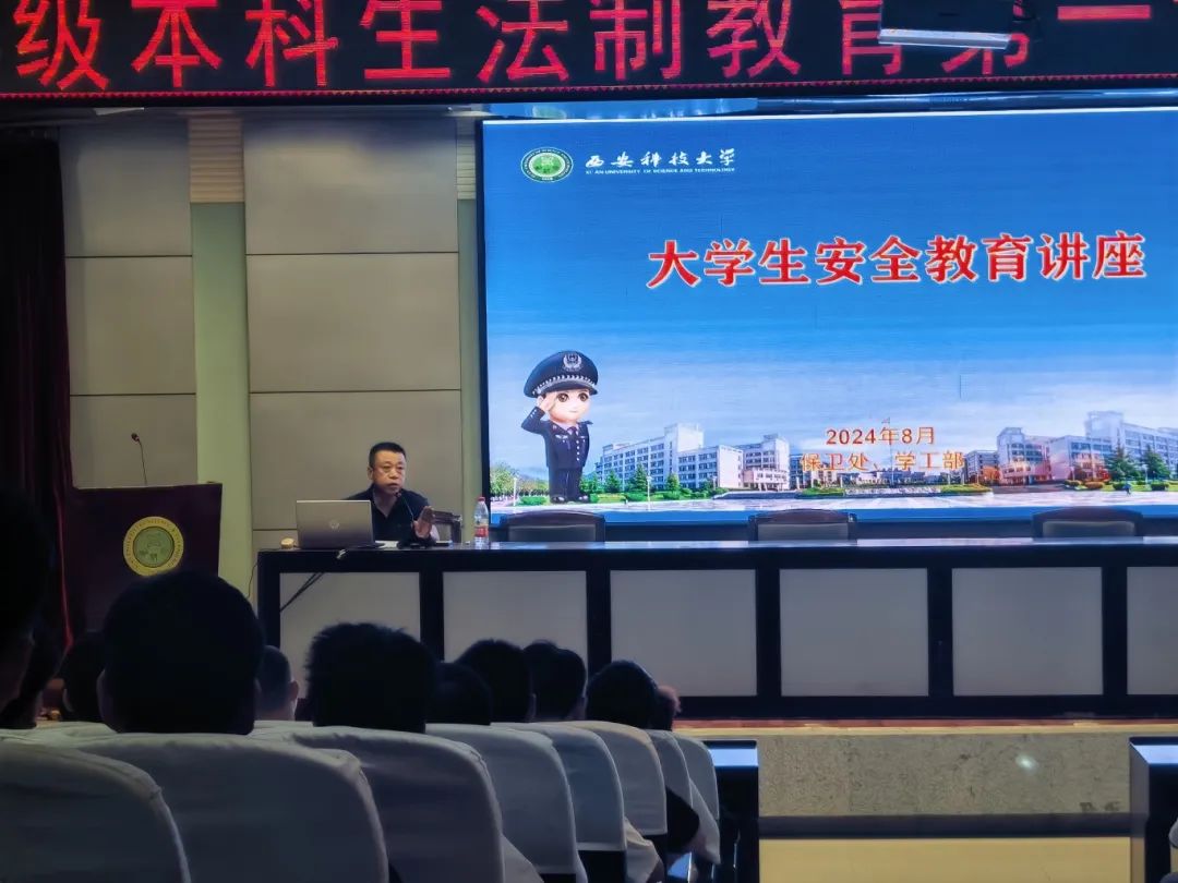 为增强大一新生法律意识及安全意识,2024年8月30日早上8点-10点,材料学院于图书馆二楼报告厅召开由保卫处魏彤老师主持的大一新生开学第一课,主题为本科生法制教育第一课暨入学安全教育。