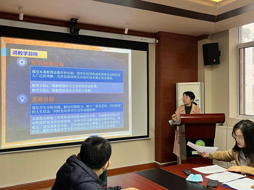 11月10日下午,材料科学工程学院在雁塔校区学院会议室举行了2022年新教师试讲活动。学院教学院长、学院各系主任、教务办主任参加了试讲活动并做了现场点评指导。学院五名新进教师分别通过5分钟说课和15分钟的试讲展示了自己所授课程的内容。课程涉及《材料工程基础》、《材料科学基础》、《煤化学》、《塑料模具涉及》、《焊接工艺》五门课程。
