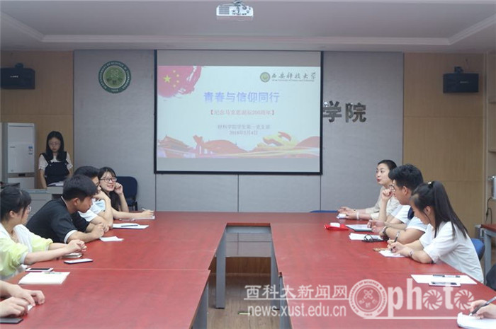 为纪念马克思诞辰200周年,深入学习马克思伟大事迹,材料学院于5月4日在临潼校区骊山校园组织学生第一党支部开展“青春与信仰——纪念马克思诞辰200周年”的主题党日活动。同学们分小组准备了ppt,结合自己的学习、工作,纷纷谈了马克思主义指导思想对于大学生成长成才的作用和意义。本次活动的开展旨在希望学生党员能够以优秀党员的形象在同学中做好模范,深入学习贯彻落实习近平新时代中国特色社会主义思想,牢固树立马克思主义的伟大旗帜,努力做一名优秀的共产党员。