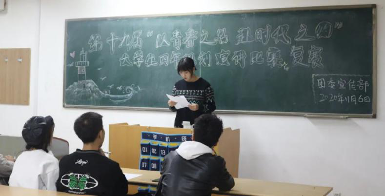 晚上7点,各教室主持人宣布比赛正式开始。进入复赛的同学们依次上台演讲,畅谈自己对于大学四年的人生规划,以及当今时代赋予大学生的责任和使命。随后评委做以一一点评,指出大家在演讲中的问题并给出建议。最后,主持人宣布比赛结束。