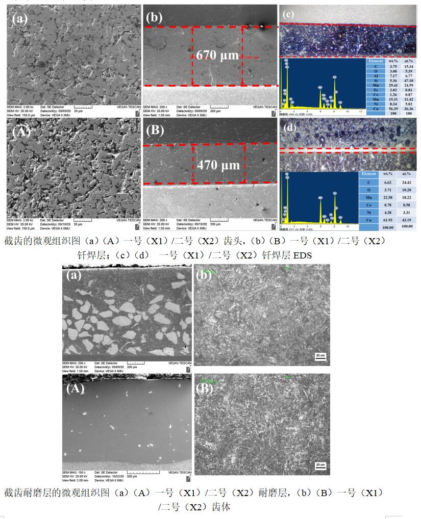 (4)利用SEM和EDS测试结果,关联分析不同截齿的微观结构差异。
